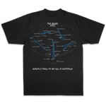 Printed on black Shaka garment dyed tees. White ink glows in the dark.